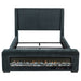 Elevate your bedroom with this sophisticated upholstered bed in a stunning dark blue fabric. Featuring a modern wingback headboard, this bed combines bold style with inviting comfort. The footboard boasts a visual flame box insert for a cozy ambiance, complete with 13 color options, adjustable brightness levels, and a wireless remote control. Crafted from durable pine, plywood, and engineered wood, this bed ensures lasting quality. The integrated Bluetooth speaker enhances functionality, making this bed a modern centerpiece for your space. Key Features: • Upholstered queen bed with a modern wingback headboard design • Luxurious dark blue fabric finish for a bold statement • Footboard includes a visual flame box insert with 13 customizable colors • Adjustable brightness levels and wireless remote for convenience • Built-in Bluetooth speaker for seamless audio streaming • Durable frame crafted from pine, plywood, and engineered wood