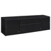 This modern entertainment center combines a sleek TV stand with two matching media towers, offering style and functionality. Finished in a bold black with a scratch-resistant eco-friendly laminate veneer, this unit provides ample storage and display options. The TV stand features cabinets, an open shelf with cable management, and a wide drawer, while each media tower includes open shelves and a bottom cabinet for organized storage. Perfect for creating a cohesive entertainment space in any living room. Key Features: • Contemporary entertainment center with a 65-inch TV stand and two media towers • Bold black finish with scratch-resistant, eco-friendly laminate veneer • Compact TV stand includes two cabinets, an open shelf with cable management, and a central drawer • Media towers provide three open shelves and a bottom cabinet for storage flexibility • Durable engineered wood construction provides stability for smaller spaces • Perfect solution for maximizing organization in a modern living room