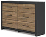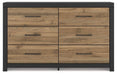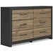• Dresser with two-tone finish (matte black finish; rich honey brown finish over replicated walnut grain with authentic touch)