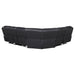 Bring modern comfort and convenience into your living space with this power reclining sectional. Designed with a rounded silhouette and rich leatherette upholstery, it offers both style and durability. Plush foam filling with tufted and channeled detailing creates inviting comfort, while pocket coil seating with sinuous spring construction ensures lasting support. Smooth power recline functionality allows customized lounging, complemented by a wall-hugger design that saves space. A flip-top console with cup holders adds practical storage for everyday use._x005F_x000D_ Key Features: • Power reclining sectional upholstered in brown breathable leatherette • Rounded silhouette with channel-tufted detailing and plush foam filling • Pocket coil seating with sinuous springs delivers lasting support • Wall-hugger recline saves floor space with smooth operation • Flip-top console provides storage for remotes and accessories • Two integrated cup holders keep beverages close at hand