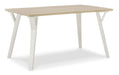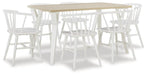 View full detailsBring light to your dining area with the clean lines and bright two-tone finish of this dining package. The round dining table, with stylized saber...