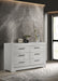 Elevate your bedroom decor with this stunning dresser, designed for both beauty and function. The high gloss finish enhances the contemporary Italian style, while the 3-dimensional diamond tile emboss adds a touch of sophistication. Six spacious drawers offer ample storage for clothing and accessories, each featuring felt lining in the top drawers to protect delicate items. The dresser is built with sturdy English dovetail joinery and 45mm thick metal glides, ensuring smooth operation and durability. This piece is perfect for those who appreciate fine craftsmanship and modern design. Key Features: • Stylish dresser with a white high gloss finish and modern design • Six drawers with felt-lined top drawers for added protection • 3-dimensional diamond tile emboss adds texture and elegance • Sturdy Pin construction joinery and metal glides for smooth drawer operation • Made from solid hardwood and engineered wood