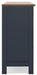 Two-tone finish features a dark slate blue with light brown wood-tone top
