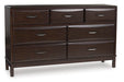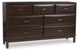 A rich, metropolitan finish. Unbeatable function. With this dresser and mirror, it’s a breeze to create a casual contemporary hideaway full of style and convenience. It combines thoughtful craftsmanship and handy storage, with smooth-gliding drawers to help keep clothes and linens organized. Metal bar pulls complete the look with added flair.