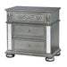 Lavishly update with this stunning bedroom night stand. Case goods shine as mirrored accents glimmer against the silver finished set. Sculpted accents embellish with floral patterning, completing the set with rich stylings.