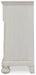 Elegant, timeless furnishings take your bedroom to the next level. Nothing does that better than this dresser. The antiqued white finish with a wonderful grain texture radiates sophistication, while dark bronze-tone knobs add an ornate touch. Felt finishing in the upper drawers rounds out this tasteful piece.