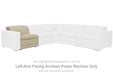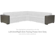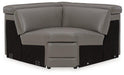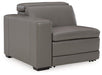 Truly putting high design into recline, this power reclining sectional with gray leather match upholstery proves that just because you’re a recliner doesn’t mean you have to look like one. Deceptively beautiful, its ultra clean-lined aesthetic is as cool and contemporary as they come. Low-profile back has a super swank look. When you need more support for your head and neck, the press of a button engages the Easy View™ power adjustable headrest, designed to let you lean back and still have a primo view of the TV. The zero wall design requires minimal space between wall and chair back, and indulgent pillow top seating gives an added layer of comfort.