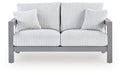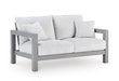 Indulge in luxe outside living without sacrificing longevity. This outdoor package combines on-trend texture with sleek aluminum frames. Lounge poolside or on the porch—the comfy cushions are a chic spot to soak up the sun. And with cleanable, UV-resistant Nuvella® fabric in a showstopping corded look, style and durability go hand in hand.