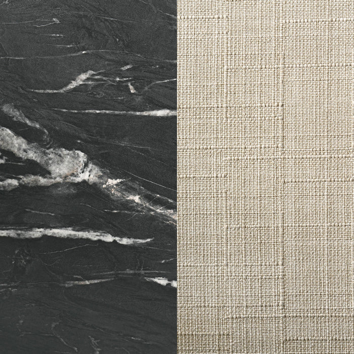 Envision your gatherings transformed with this exquisite dining set, where the sleek lines of modern design meet the timeless allure of faux marble. The table's luxurious black marble-esque top is a symphony of style, supported by fin-style legs that ground it with a touch of sophistication. As your ensemble grows with the seamless self-storing extension, the dining tableau adapts, offering a spacious stage for both feasts and intimate conversations. Accompanying the table, the Danish Y-shaped wishbone chairs, dressed in black and beige, whisper of coastal breezes and relaxed elegance, their form both a nod to tradition and a statement of contemporary grace. This dining set doesn't just host meals; it curates experiences. Key Features: • Elegant 5-piece dining set features a rectangular table with a striking faux marble top • Accommodates additional guests with a 16" self-storing leaf • Set includes six elegant wishbone side chairs in black with beige fabric cushions • The table's fin-style legs and chairs' tapered design provide a cohesive look • Both table and chairs boast durable construction, with materials chosen for longevity and ease of maintenance