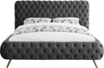 Surround yourself in modern luxury when you add this Delano Grey Velvet Queen Bed to your bedroom oasis. Sumptuous by design, this bed features all-over button tufting for a look that is nothing short of stunning. This dimensional bed features a heavily padded headboard and side rails, each covered in magnificent-to-the-touch grey velvet for a look that's upscale and simply divine. Metal legs on this bed allow easy clearance for vacuuming, and the bed uses just a mattress, so there's no need for a box spring or foundation, which only adds to its sleek look.