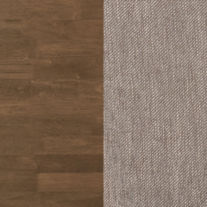 Small kitchens and dining spaces take an early style lead with a casual dining set targeted at versatility and mid-century modern creds. This beautifully designed five-piece set offers construction of walnut finish rubberwoods, warm and inspiring of a coastal or Euro look. A convex tabletop profile embellishes the already fresh style of a geometric base with angled open sections interlocking at the base, forming a symmetrical and quirky design with extra verve. Four chairs are charming with a curved, slender back and accents, tapered legs and foot rails. Padded seat cushions with moderate molding are upholstered with neutral brown fabric. Key Features: • Introduce a stylish and light vibe with this five-piece dining set, made with rubberwood and finished in a rich walnut • A round tabletop with a convex edge profile enhances dimensionality with a perfecting touch • Interlocking open leg units form a fun and festive geometric silhouette with a breezy feel • Slender chairs take on a curved silhouette with tapered legs and a rounded back • Chair cushions add comfort with foam padding and soft brown upholstery adding to a versatile palette