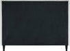 Snuggle up to a pet or other loved one in this richly upholstered Eva cream velvet king size bed for the ultimate in rest and relaxation. The wing back headboard has cushioned vertical deep channel tufting, and both the side rails and footboard are upholstered too for your comfort. Tapered black wood legs match the upholstery and support this contemporary bed, elevating it sufficiently that you can store items underneath.