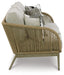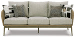Effortless in its beauty, this outdoor sofa echoes your easygoing sensibilities. Simply stunning in a brown wood-look finish and paired with handwoven rope on a sturdy aluminum frame, it’s an ideal companion for relaxing poolside or hosting friends alfresco. And with high-performance beige Nuvella+™ fabric, this sofa makes stylish living a breeze.