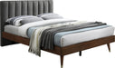 Trust this Vance midcentury modern polyester linen queen-size bed to give your room a totally new look and an elegant vibe. The frame is made from real wood with a walnut finish, so this bed pairs beautifully with the nightstand in the same collection. The linen headboard covered in soft and durable grey linen fabric upholstery for softness and comfort provides an exceptionally contemporary yet midcentury slant.